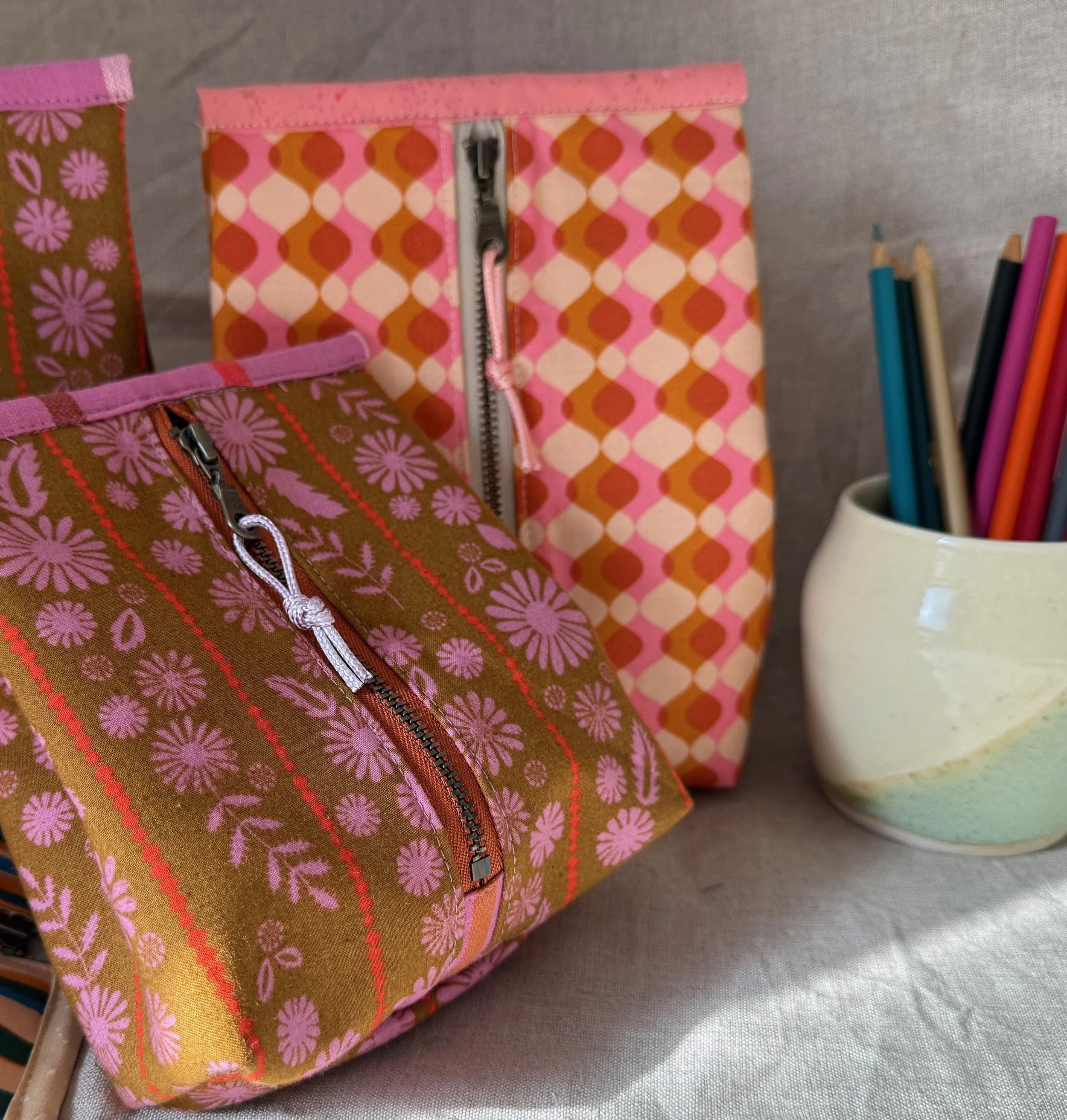 Compact, clever, and endlessly useful, this boxy pouch is the perfect way to keep your small essentials organized. Made from premium designer quilt-weight cotton, it’s soft yet structured enough to hold tools, notions, cosmetics, chargers, or any of the little things that tend to wander.